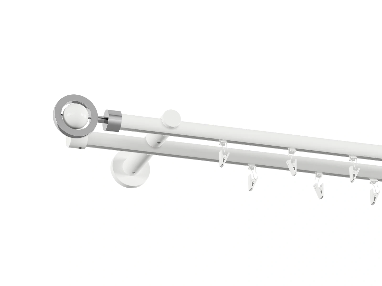 • Dĺžka 4400 mm - tyč 19mm - 2200mm - 4ks, spojka tyče – 2 ks, držiak dvojitý - 3ks, koncovka - 2ks, koncovka zadná (PULLO) -2ks, krúžok so štipcom - 84ks (pri výbere parametra príslušenstvo s krúžkami so štipcom), skrutky a hmoždinky na montáž