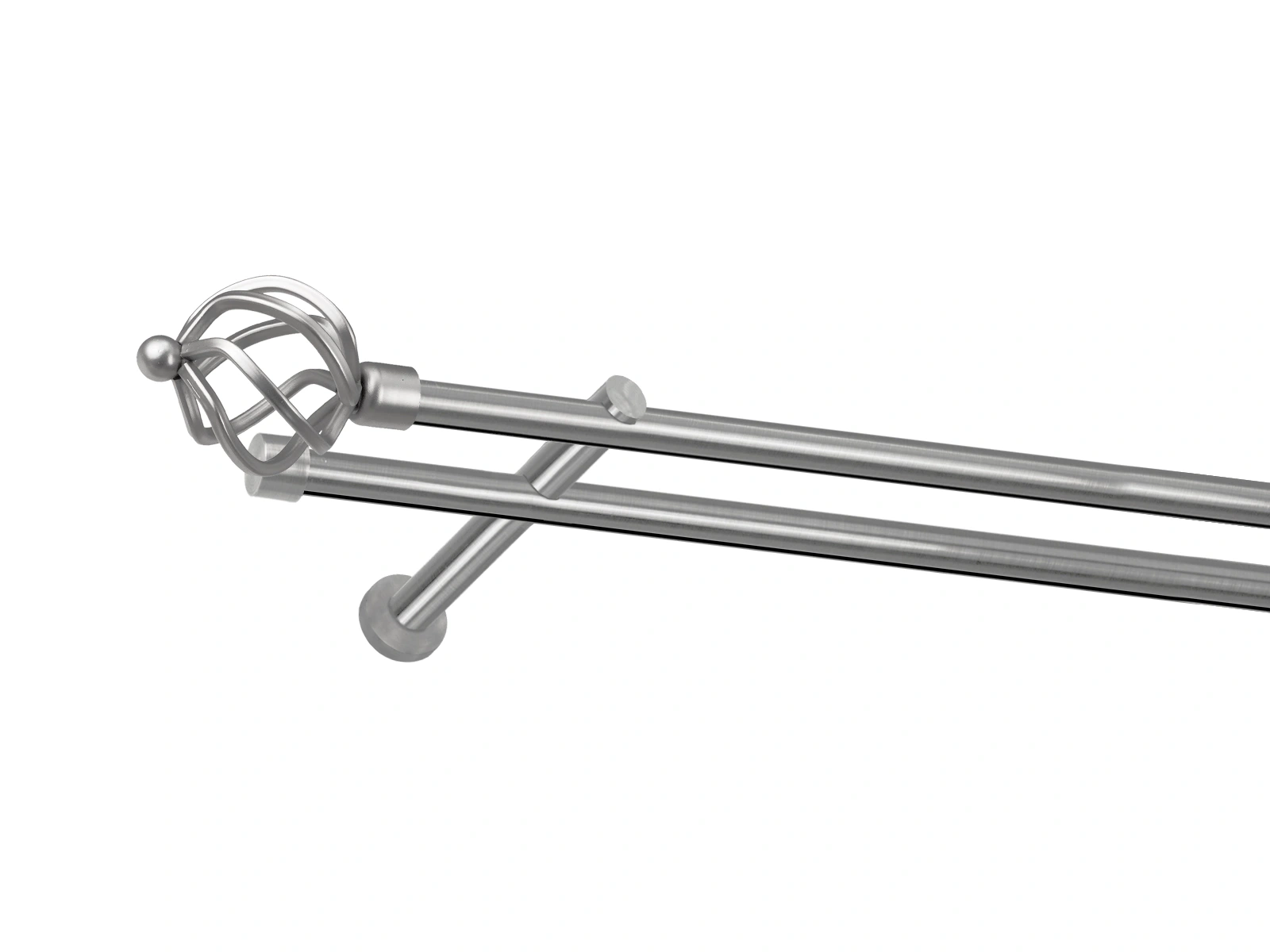 Dvojradová garniža s povrchovou úpravou - odtieň satin-nikel (matné striebro). Celokovové garniže s kvalitnou povrchovou úpravou - galvanické pokovovanie. Galvanické pokovovanie zabezpečuje vyššiu povrchovú tvrdosť, zvýšenú dolnosť voči poškriabaniu, hladký povrch. Dodávané sú v kompletoch.