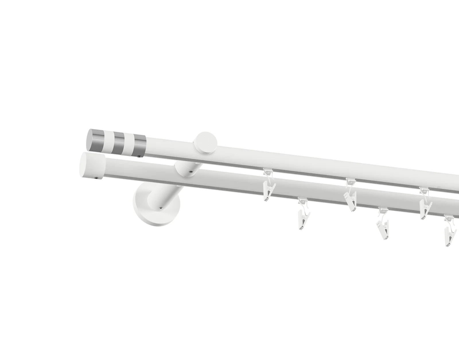 • Dĺžka 1600 mm - tyč 19mm - 1600mm - 2ks, držiak dvojitý - 2ks, koncovka - 2ks, koncovka zadná (PULLO) - 2ks, krúžok so štipcom - 30ks (pri výbere parametra príslušenstvo s krúžkami so štipcom), skrutky a hmoždinky na montáž