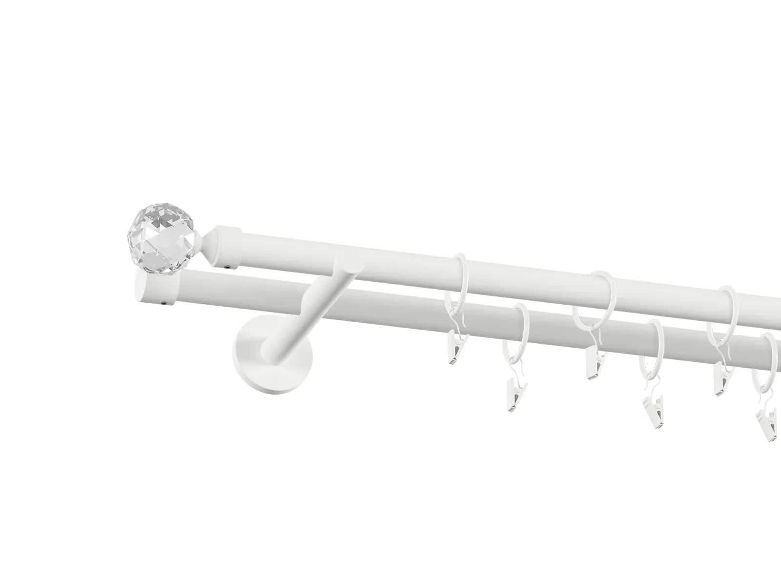 • Dĺžka 3200 mm - tyč 19mm - 1600mm - 4ks, spojka tyče – 2 ks, držiak dvojitý - 3ks, koncovka - 2ks, koncovka zadná (PULLO) -2ks, krúžok so štipcom - 60ks (pri výbere parametra príslušenstvo s krúžkami so štipcom), skrutky a hmoždinky na montáž