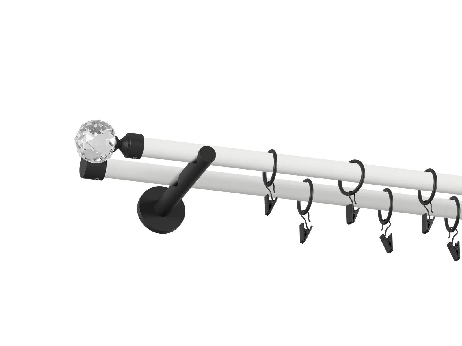 • Dĺžka 1600 mm - tyč 19mm - 1600mm - 2ks, držiak dvojitý - 2ks, koncovka - 2ks, koncovka zadná (PULLO) - 2ks, krúžok so štipcom - 30ks (pri výbere parametra príslušenstvo s krúžkami so štipcom), skrutky a hmoždinky na montáž