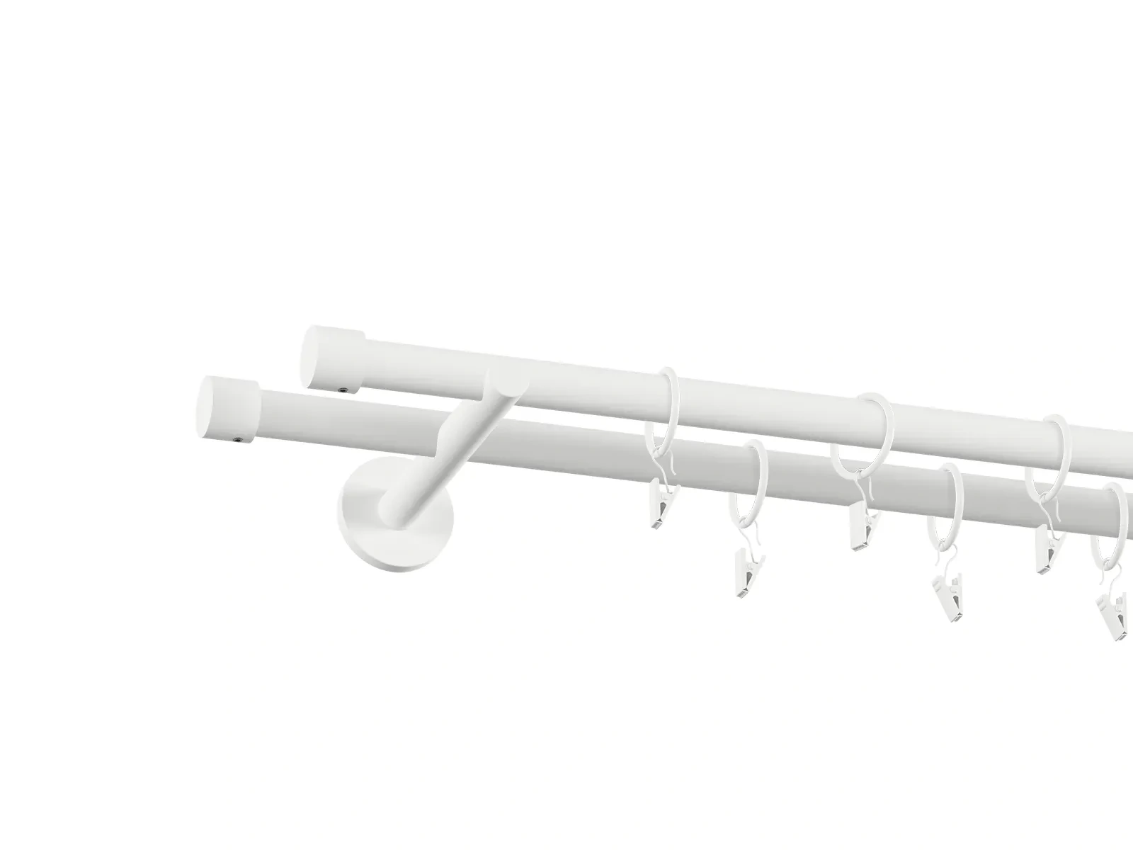 • Dĺžka 1200 mm - tyč 19mm - 1200mm - 2ks, držiak dvojitý - 2ks, koncovka - 2ks, koncovka zadná (PULLO) - 2ks, krúžok so štipcom - 22ks (pri výbere parametra príslušenstvo s krúžkami so štipcom), skrutky a hmoždinky na montáž