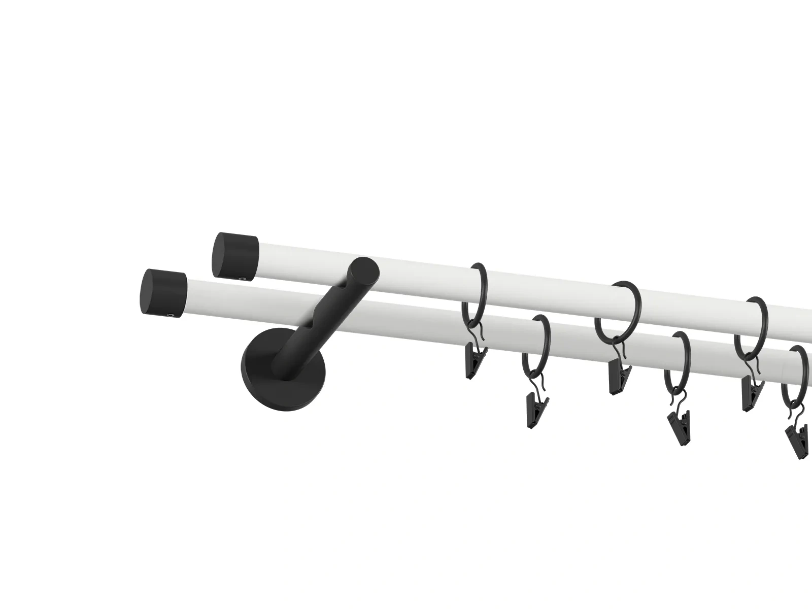 • Dĺžka 1600 mm - tyč 19mm - 1600mm - 2ks, držiak dvojitý - 2ks, koncovka - 2ks, koncovka zadná (PULLO) - 2ks, krúžok so štipcom - 30ks (pri výbere parametra príslušenstvo s krúžkami so štipcom), skrutky a hmoždinky na montáž