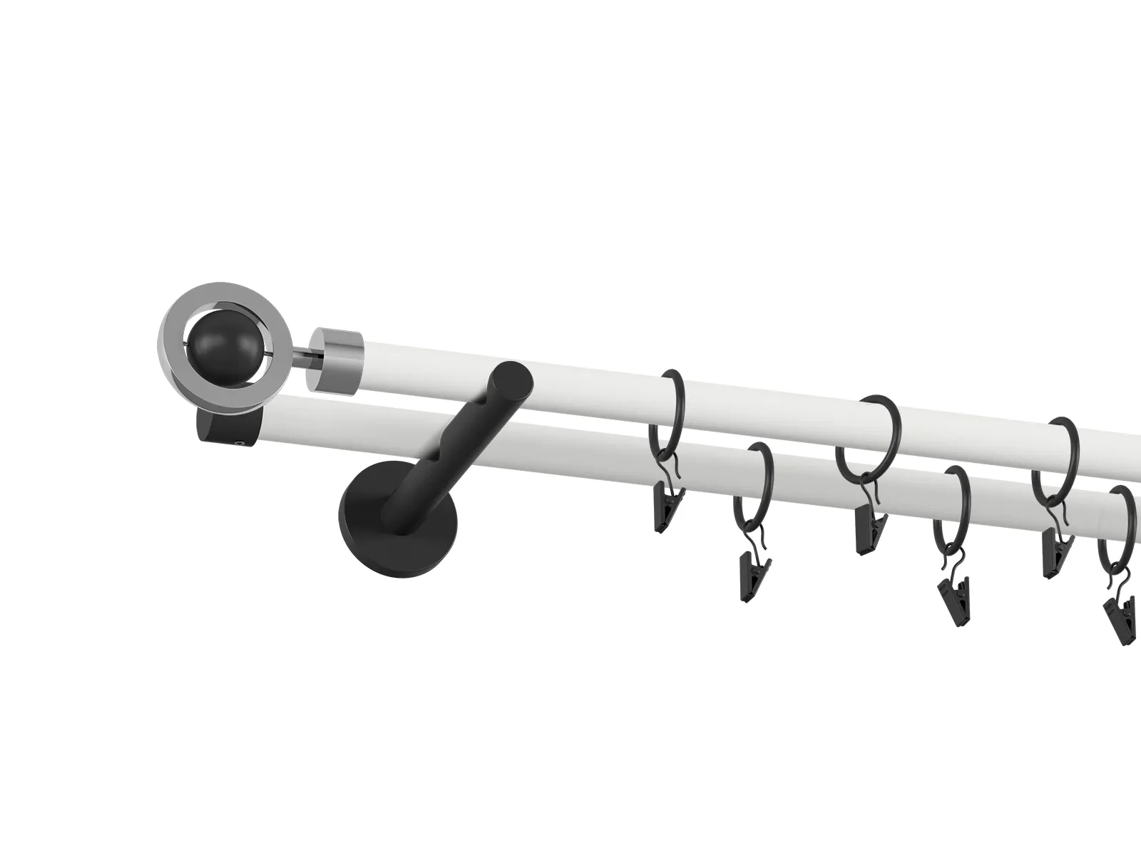 • Dĺžka 1600 mm - tyč 19mm - 1600mm - 2ks, držiak dvojitý - 2ks, koncovka - 2ks, koncovka zadná (PULLO) - 2ks, krúžok so štipcom - 30ks (pri výbere parametra príslušenstvo s krúžkami so štipcom), skrutky a hmoždinky na montáž