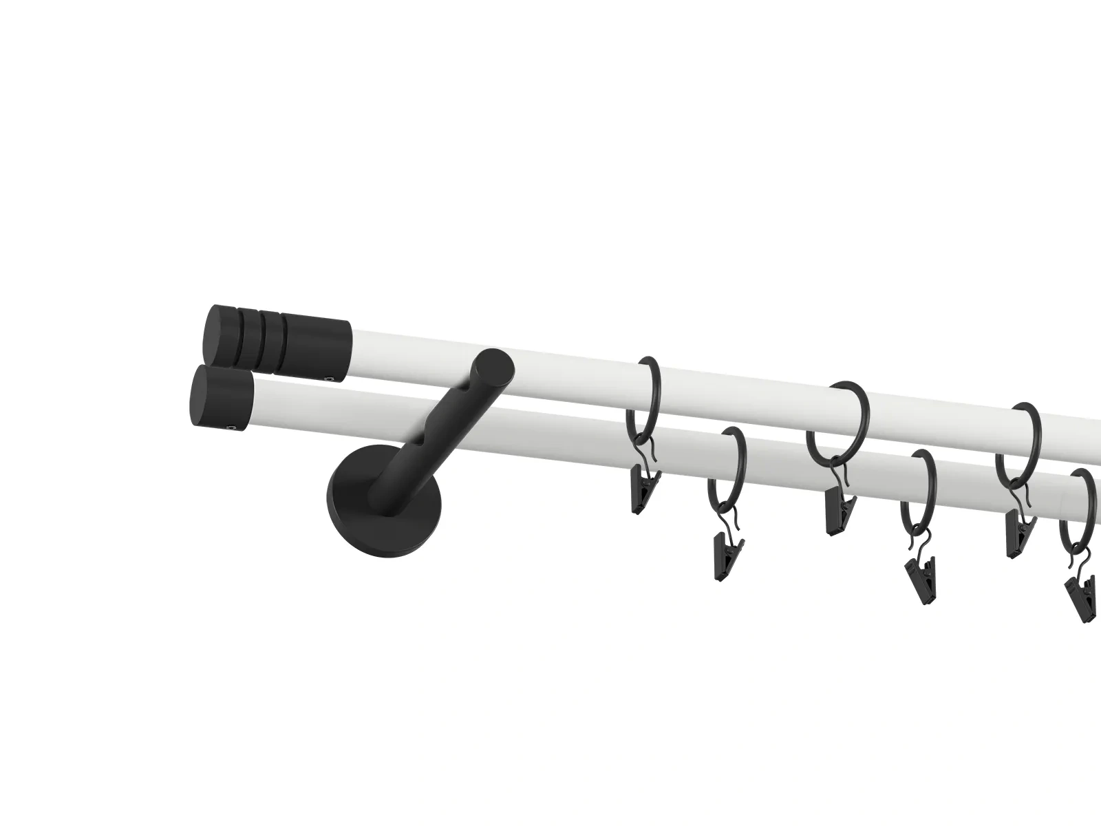 • Dĺžka 3200 mm - tyč 19mm - 1600mm - 4ks, spojka tyče – 2 ks, držiak dvojitý - 3ks, koncovka - 2ks, koncovka zadná (PULLO) -2ks, krúžok so štipcom - 60ks (pri výbere parametra príslušenstvo s krúžkami so štipcom), skrutky a hmoždinky na montáž