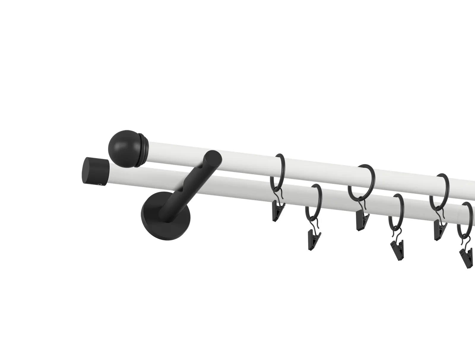 • Dĺžka 4400 mm - tyč 19mm - 2200mm - 4ks, spojka tyče – 2 ks, držiak dvojitý - 3ks, koncovka - 2ks, koncovka zadná (PULLO) -2ks, krúžok so štipcom - 84ks (pri výbere parametra príslušenstvo s krúžkami so štipcom), skrutky a hmoždinky na montáž