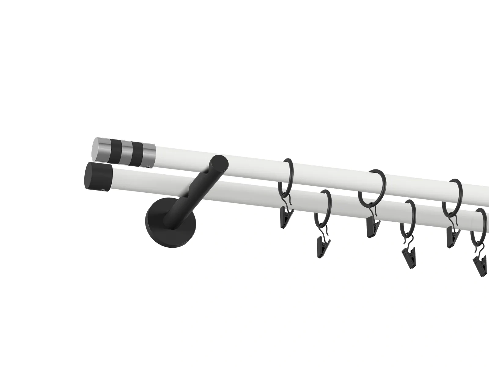 Čierne a biele kovové rúrky pre garniže s klasickým a drážkovým profilom