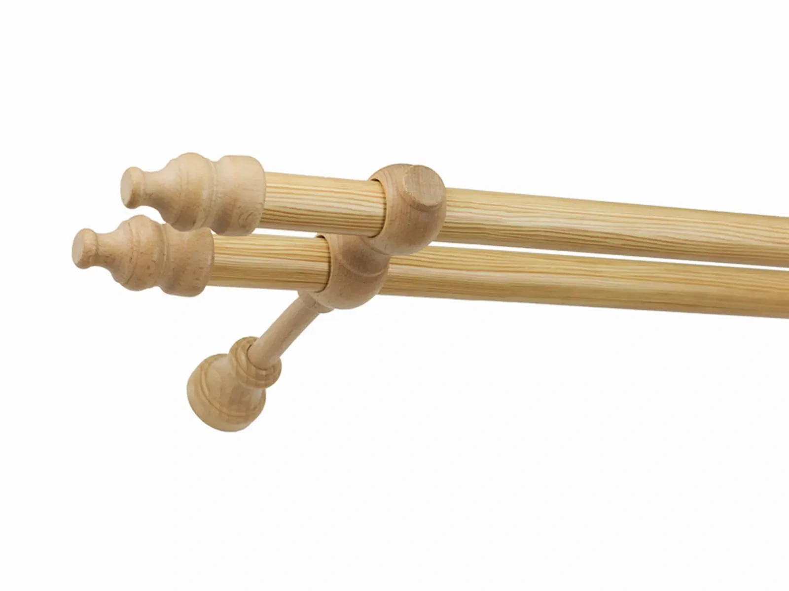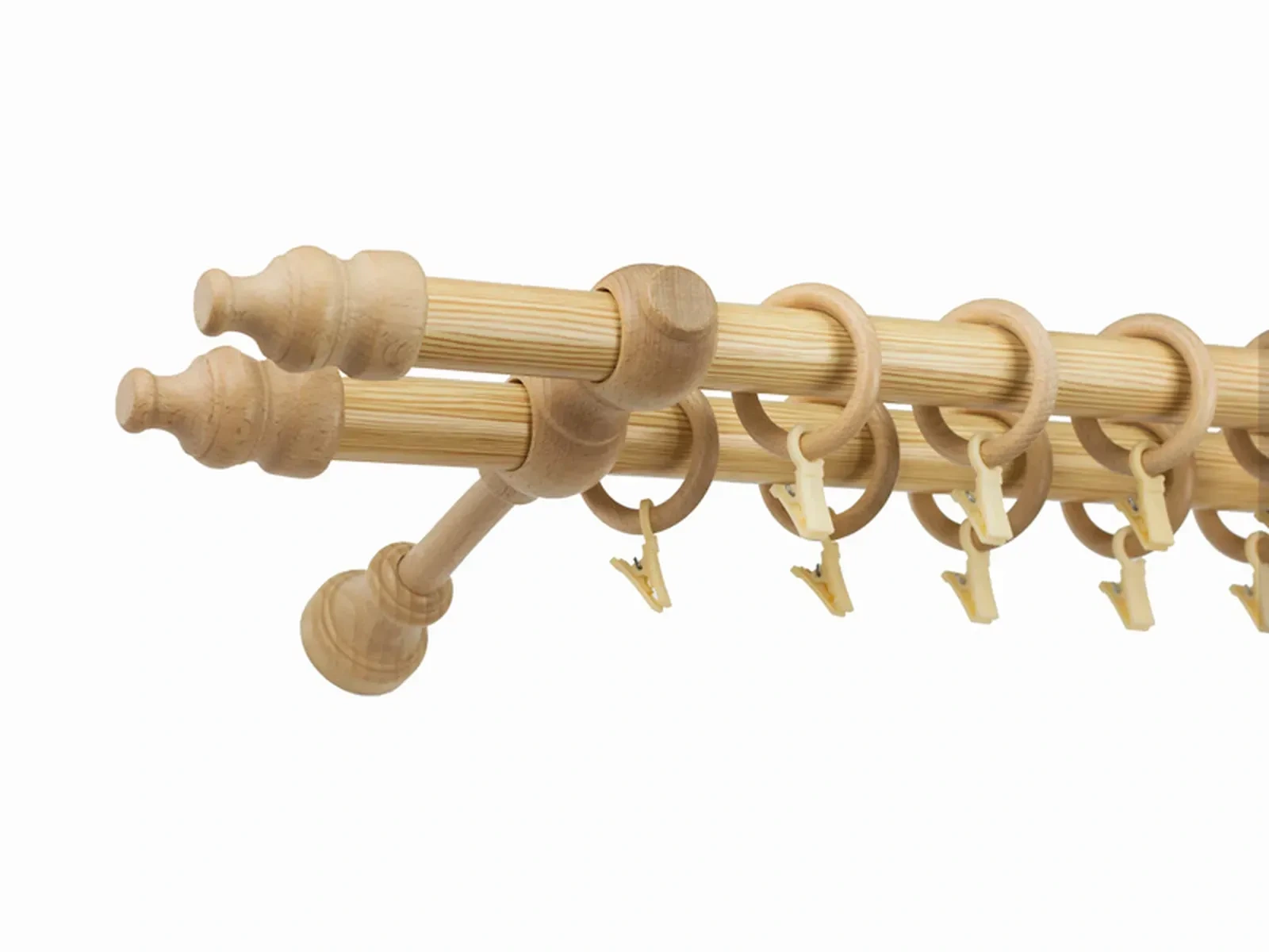 Farebná paleta zahŕňa obľúbené odtiene - buk, borovica, dub zlatý, orech a jelša. Tieto dekory verne imitujú štruktúru dreva a umožňujú ľahké zladenie s nábytkom, podlahami či ďalšími drevenými prvkami v interiéri. Pri odtieni borovica využívame totožné držiaky a koncovky ako pri odtieni buk. Samotné tyče sú v danom dekore, ale krúžky a koncovky sú morené.