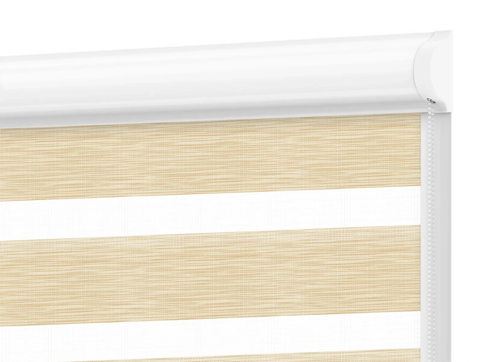 Pri roletách swing s látkou deň a noc garantujeme kompletné navinutie látky do bubna do výšky 1800mm. Nad túto výšku sa hrubšie látky nemusia kompletne do bubna narolovať a ostávajú tak voľne visieť. Neobmedzuje to funkčnosť rolety.